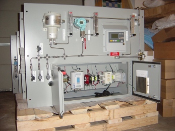 and two calibration gases in one manifold. The manifold switches between sample inputs and provides a bypass flow for all